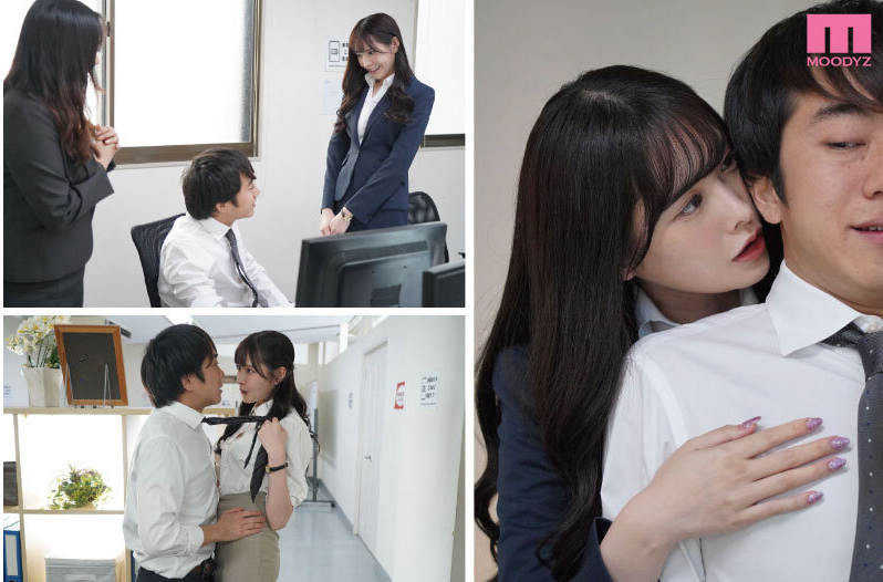 2人で社長室に忍び込み、セクシーな下着姿女上司 新ありなさんが指フェラ、乳首舐め手コキでご奉仕。